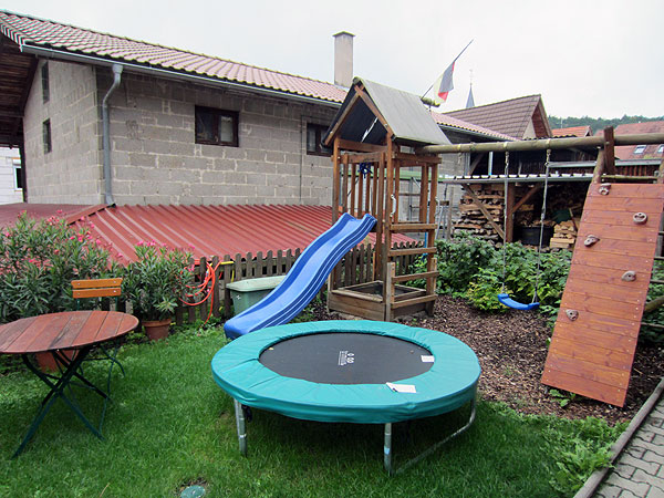 Hausansicht und Spielplatz: Bad und Küche: Wohn- und Schlafzimmer: